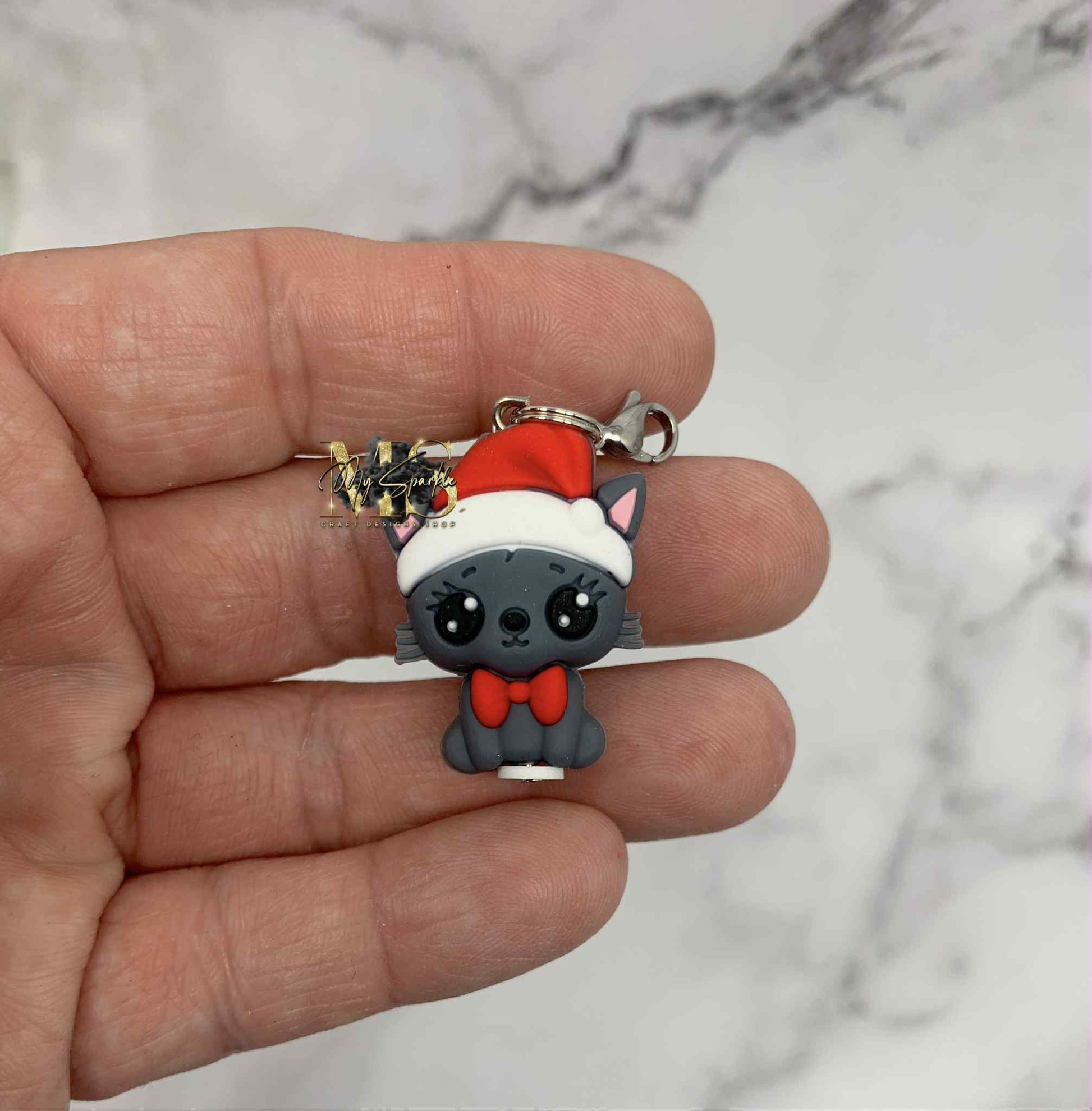 Christmas Kitten Badge Reel Charm