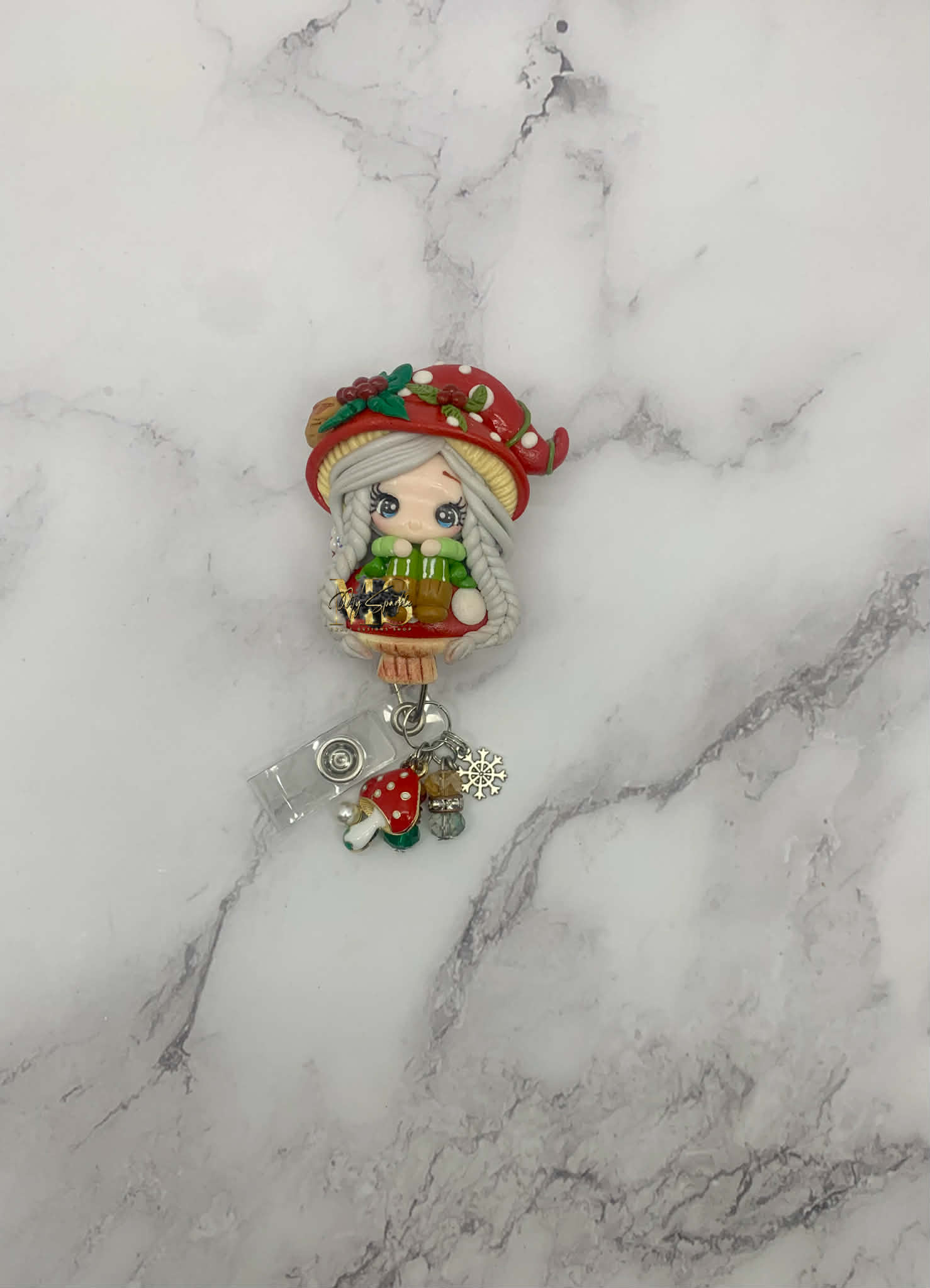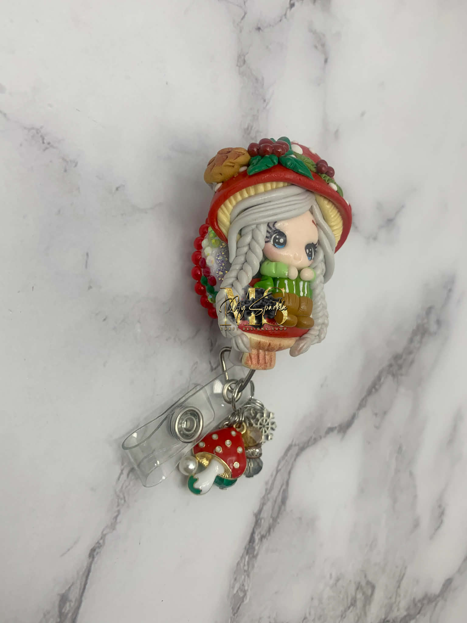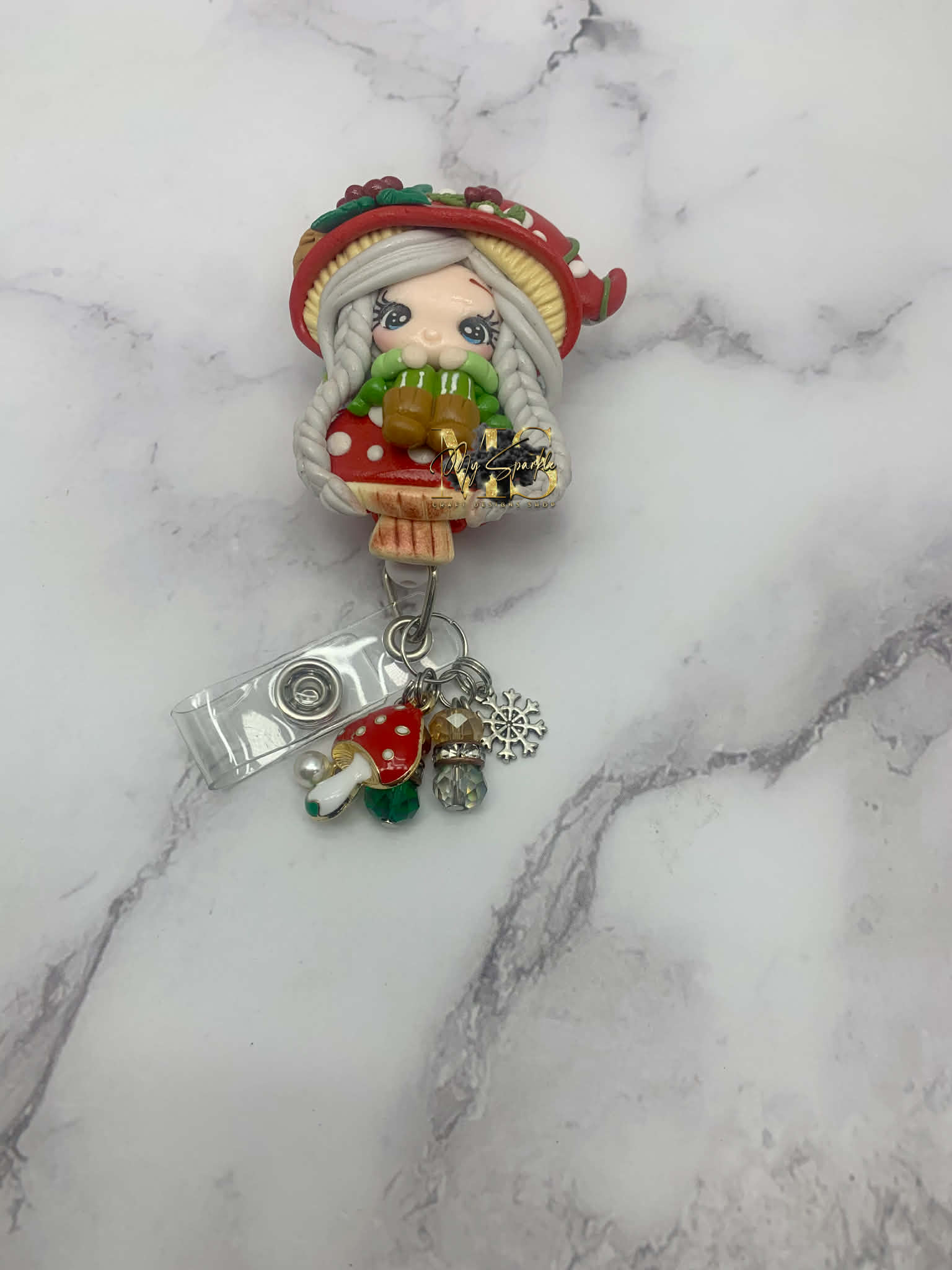 Christmas Mushroom Girl Badge Reel